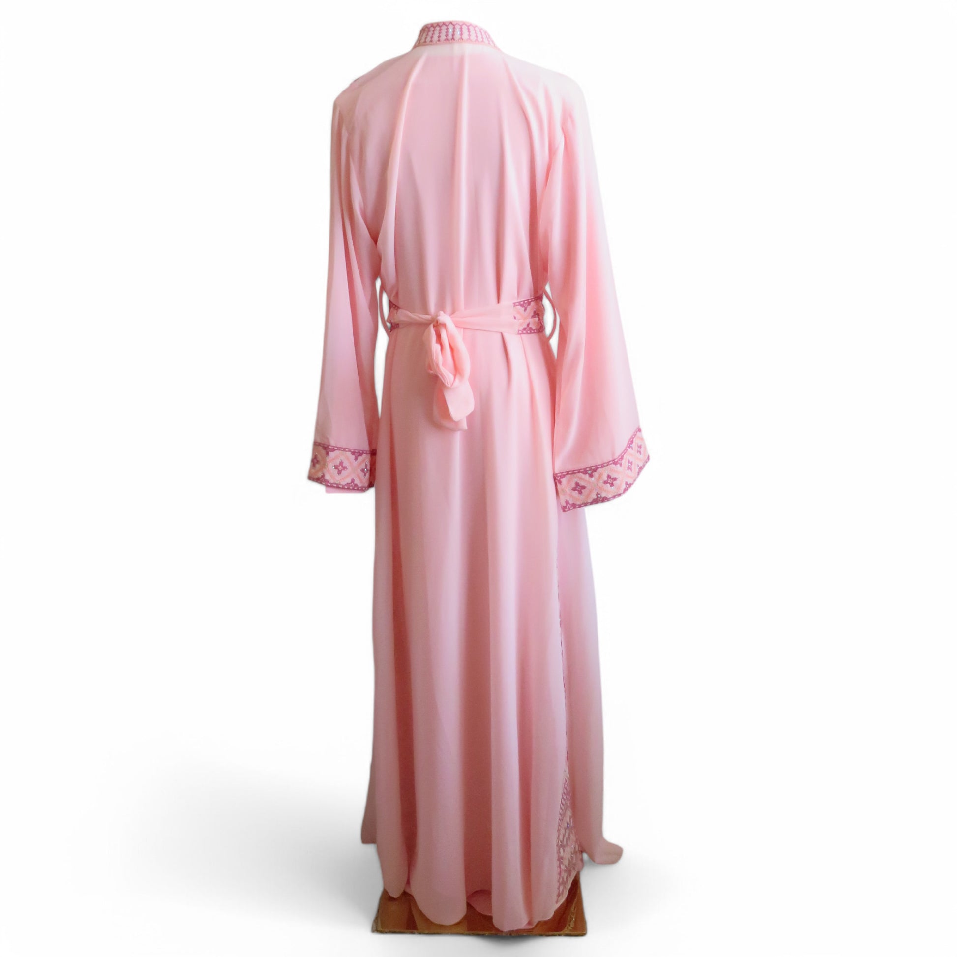 - 3-piece set: inner dress + embroidered open abaya + matching belt